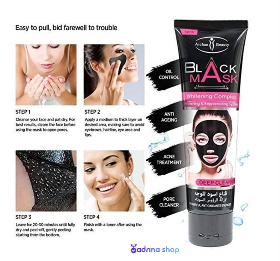 بلک ماسک آیچون بیوتی محصولی با دو کاربرد متفاوت است. در ابتدا زغال باعث جذب ناخالصی ها و چربی اضافی پوست می گردد، سپس شکر سیاه به طور کاملاً ملایم پوست را لایه برداری کرده و سلول های مرده پوست را از بین می برد. با استفاده از بلک ماسک آیچون بیوتی، پوست شما به صورت ملایم لایه برداری شده و ناخالصی های حاصل از آلودگی محیط از روی پوستتان به راحتی پاک می شود. در نتیجه پوست ظاهری شاداب و با طراوت پیدا خواهد کرد.بلک ماسک Aichun Beauty کار از بین بردن آلودگیهای پوست و سم زدایی از آن را دو بار انجام میدهد. ابتدا، با استفاده از ترکیبات تصفیه شده طبیعی زغال خود، بدون اینکه باعث خشک شدن پوست صورت شود، ناخالصی های آن و چربی های اضافه آنرا جذب می کند. سپس با استفاده از دانه های شکر سیاه خود، سلول های مرده سطح پوست را به منظور نرم کردن و شفاف سازی آن از بین می برد.ماسک زغال آیچون بیوتی، لایه بردار و پاک کننده بسیار قوی، مناسب برای از بین بردن جوشهای روی پیشانی، بینی، چانه و از بین بردن جوشهای سر سیاه و ترمیم کننده صورت است. ماسک زغال یا بلک ماسک برای پاکسازی عمیق صورت نیز بکار می رود. بدین صورت که تمام سلول های پیر و مرده صورت را جدا کرده و مانع بروز جوش های سر سیاه می گردد.