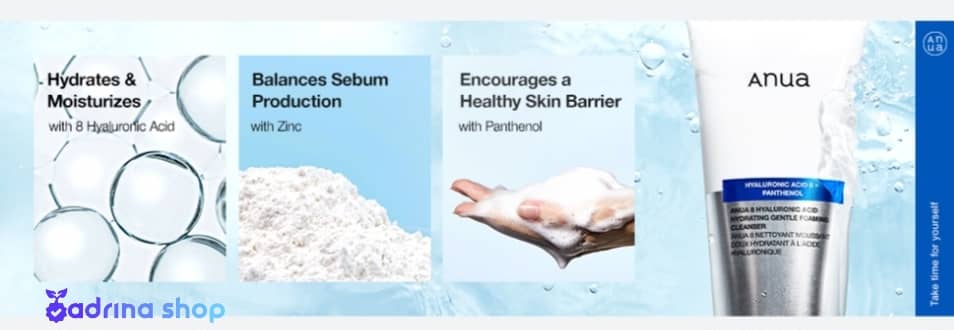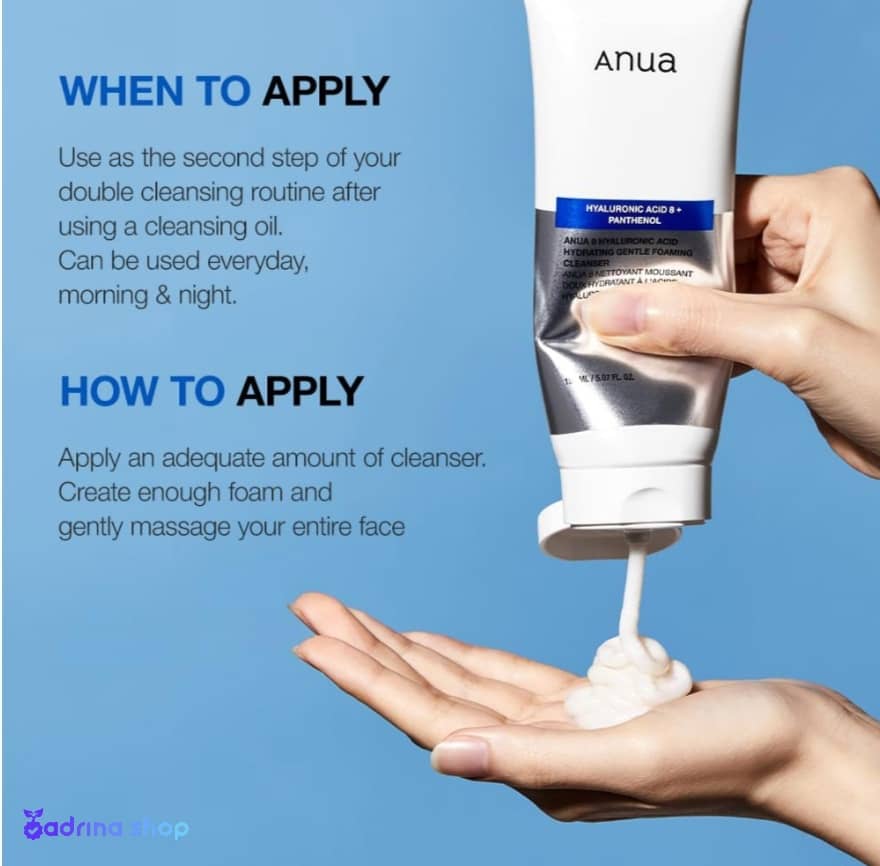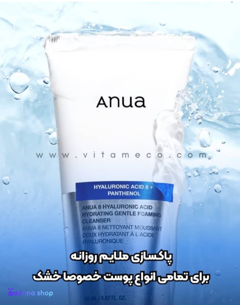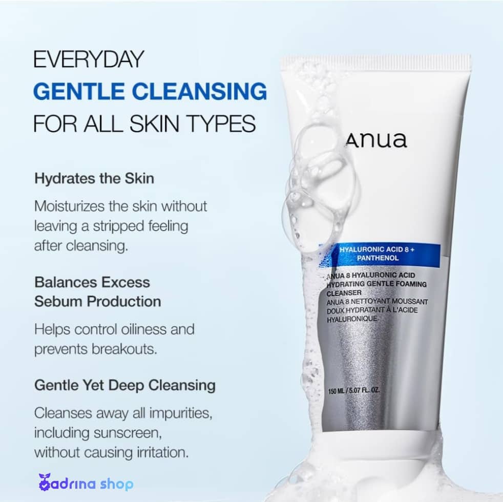 فوم شوینده ملایم صورت آبرسان آنوا با 8 نوع هیالورونیک اسید و پنتنول Anua 8 Hyaluronic Acid Hydrating Gentle Foaming Cleanser