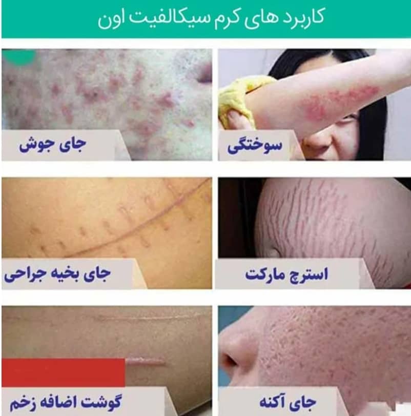 - کرم سیکالفیت برای لک صورت و از بین جای زخمهای و لکههای ناشی از جوشها مؤثر است.