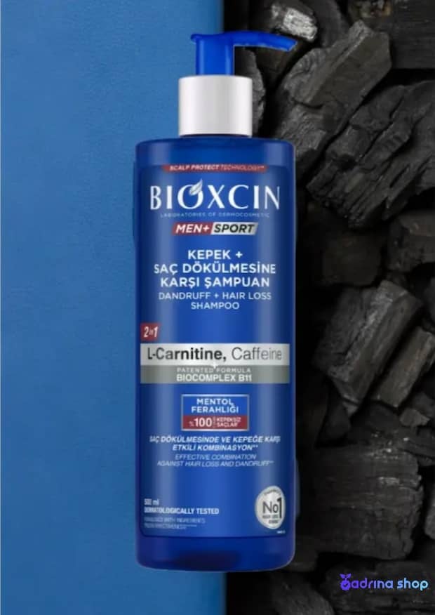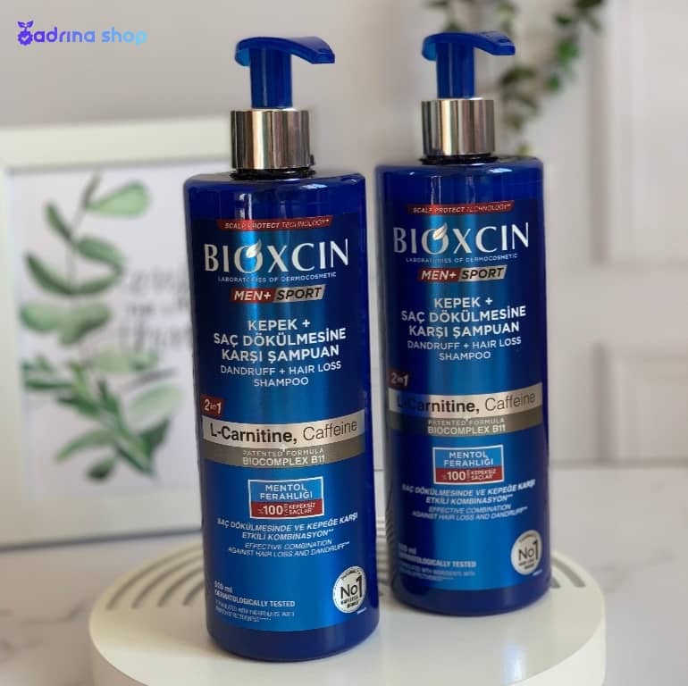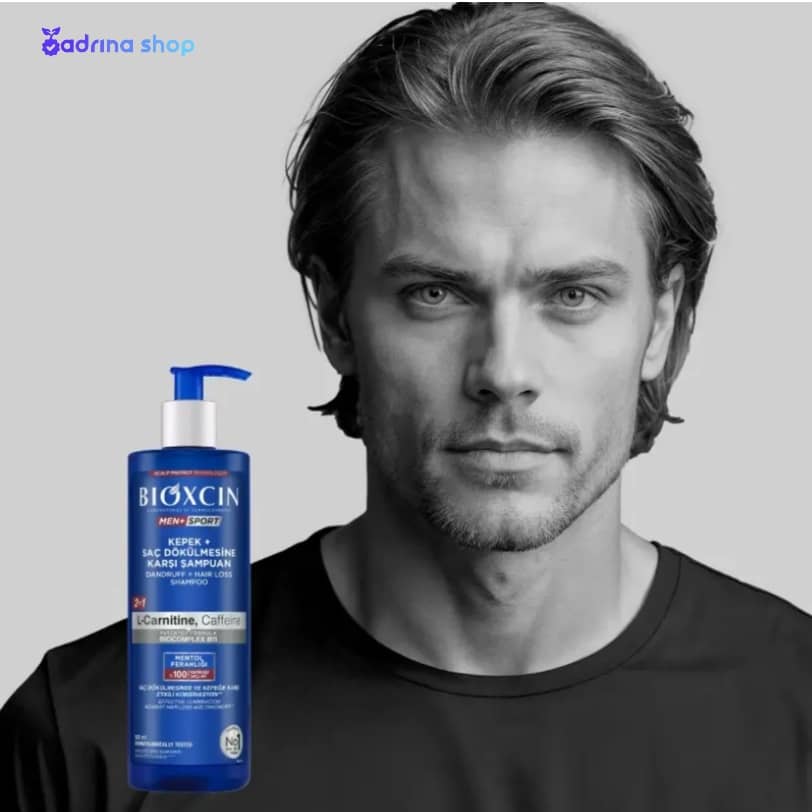 شامپو کافئین بیوکسین ضد شوره مردانه BIOXCIN مدل men + sport با عملکرد 2in1 و فرمول ویژه غنی شده با ال کارنیتین و کافئین، راه حلی موثر در برابر ریزش مو و شوره سر است