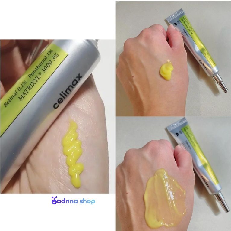 - بافت غلیظ و زرد رنگ: این بوستر دارای بافتی غلیظ، مغذی و معمولاً زرد رنگ (به دلیل وجود رتینال) است که به راحتی جذب پوست میشود و احساس چربی ناخوشایند بر جای نمیگذارد.