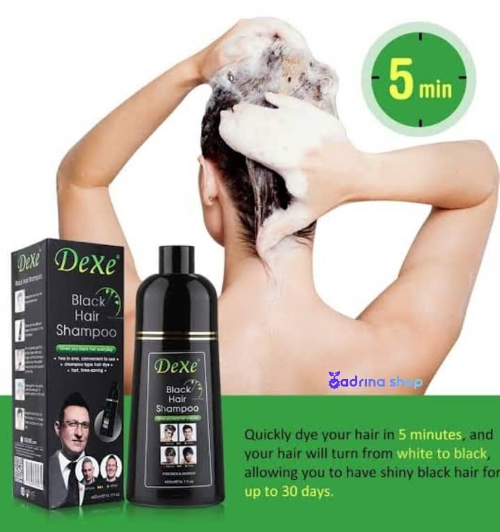 شامپو رنگ مو سیاهی طبیعی در 8 دقیقه با عصاره روغن آرگان برند دکسی DEXE در عرض چند دقیقه و بدون آسیب رساندن به موها آن ها را مشکی می کند. بسیاری از افراد موهایشان به سرعت در جوانی سفید می شود و موهای مشکی جایشان را به موهای جوگندمی در جوانی می دهند.