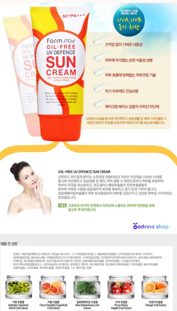 عصاره پرتقال و گریپ فروت این کرم به از بین بردن جوش، آکنه و سلولهای مُرده پوست کمک شایانی می کند. این کرم با داشتن عصاره طبیعی کیوی، سیب و گوجه فرنگی میزان سبوم در نتیجه چربی پوست شما را تنظیم کرده و باعث تقویت کلاژن سازی پوستتان می شود. با خرید این کرم علاوه بر ضد آفتاب، یک اسکراب قوی، پاک کننده عالی و مرطوب کننده مؤثر خواهید داشت.