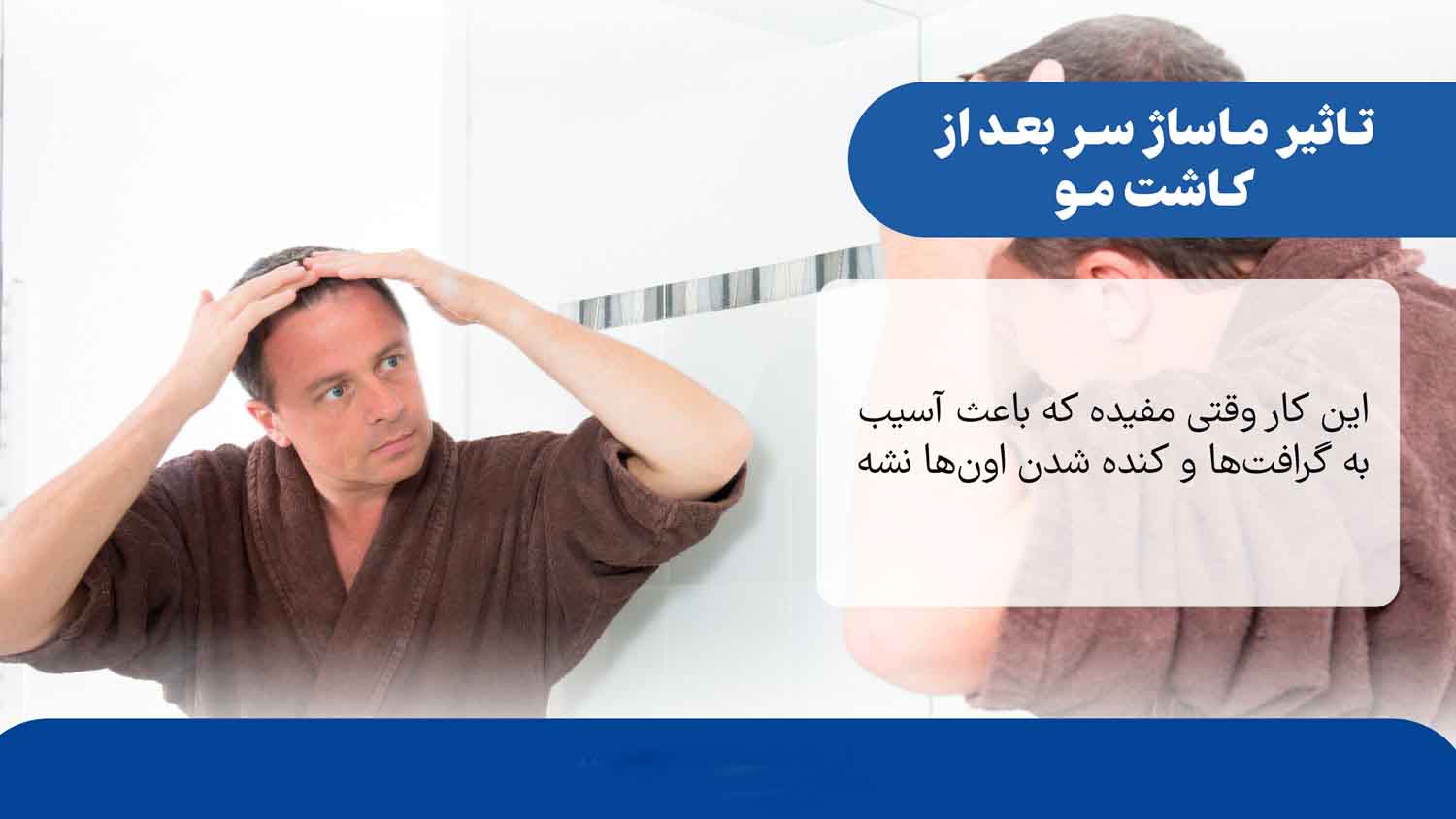 - ماساژ سر: ماساژ منظم سر به بهبود گردش خون در سر کمک میکند، که موجب تغذیه بهتر فولیکولهای مو میشود.