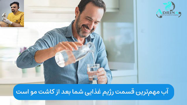 نوشیدن آب کافی شاید از مهمترین موارد بعد از کاشت مو باشد. آب کافی هم باعث میشود ورم سر زودتر التیام پیدا کند و هم با تنظیم گردش خون باعث میشود موها بهتر تغذیه شوند. برای تقویت موهای کاشته شده، در کنار نوشیدن آب کافی باید اطمینان حاصل پیدا کنید که ویتامینها و مواد معدنی مهم نیز به بدن میرسند. این ویتامینها و مواد معدنی شامل ویتامین ب کمپلکس، ویتامین ای، ویتامین سی، ویتامین آ، زینک و آهن هستند.