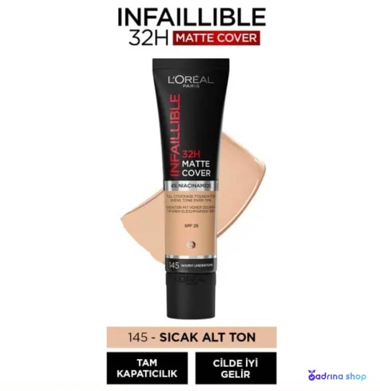 کرم پودر لورال تیوپی اینفالیبل Infallible چربی پوست را جذب می کند در نتیجه از براق شدن پوست جلوگیری می کند. ماندگاری بالا، فرمولاسیون غنی از مواد معدنی و بافت نرم آن جزو ویژگی های است که موجب محبوب شدن این کرم پودر بی نظیر شده است. کرم پودر لورال اصل رنگ های مختلفی دارد و شما می توانید با توجه به رنگ پوست صورت و گردنتان نزدیک ترین رنگ به آن را پیدا و استفاده کنید. این کرم پودر به عنوان پایه اصلی آرایش به شما کمک خواهد کرد تا سطحی یکنواخت و بدون عیب را در پوست ایجاد کنید؛ بافت سبک و عالی این محصول بعد از گذشت ۲۴ ساعت باعث خشکی و سنگینی پوست شما نمی شود و بدون ایجاد خطوط و چروک روی پوستان باقی می ماند.