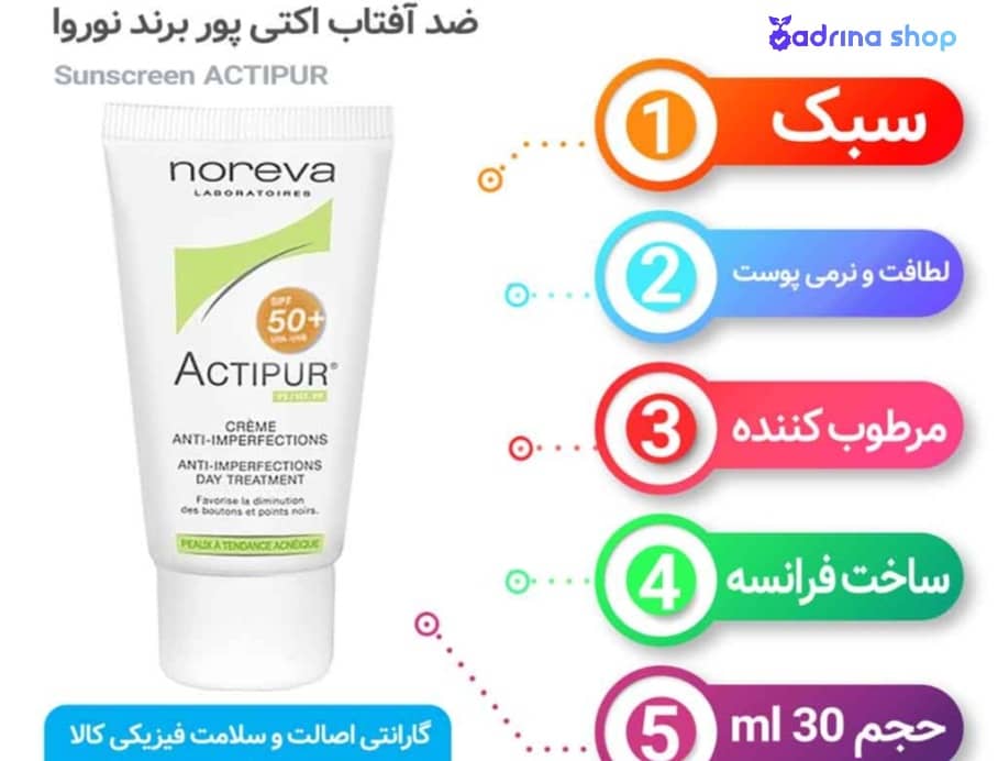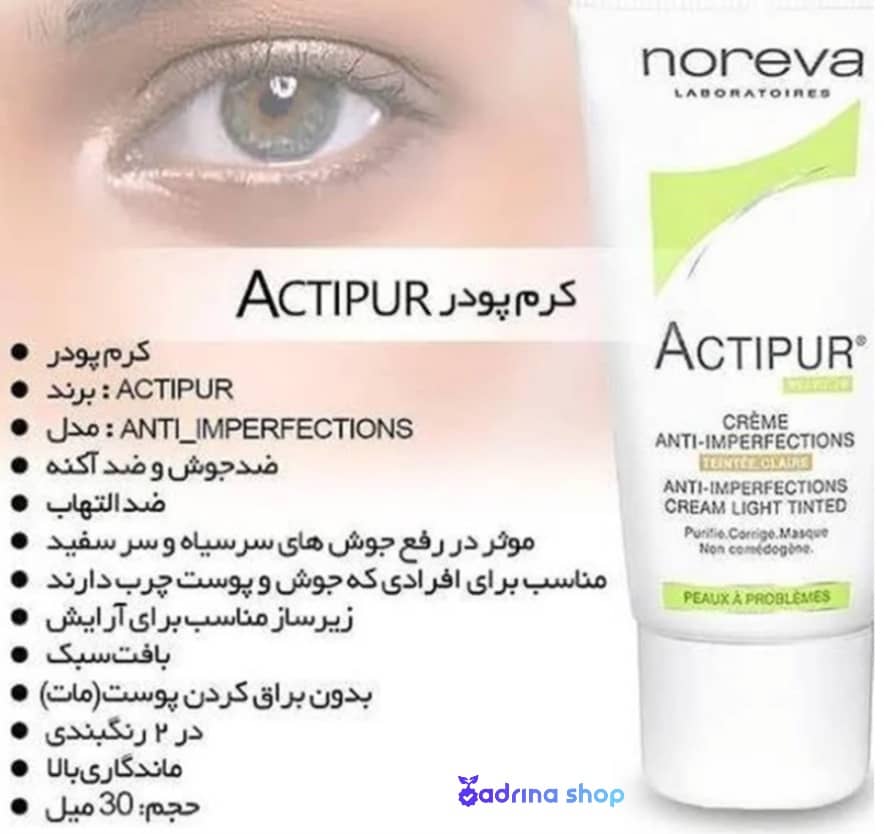 یک کرم ضد جوش با پوشانندگی خوب است که دارای خاصیت کنترل چربی است و موجب بهبود جوش و جلوگیری از آن میشود. ارائه شده در دو رنگ پر کاربرد و یک گزینه عالی برای استفاده روزانه است. این محصول در عین حال که جنبه آرایشی دارد، با کنترل چربی موجب جمع کنندگی و پوشاندن منافذ میشود و یک درمان عالی برای جوش و آکنه به حساب می آید. ب ب کرم اکتی پور حاوی ترکیباتی است که از خشک شدن پوست در حین درمان جلوگیری میکند و جلوه ای طبیعی و سالم به پوست میبخشد؛ همچنین بافتی سبک و کرمی دارد که به خوبی روی پوست پخش شده و جلوهای مات و یکدست برای پوست به ارمغان میآورد.بی بی کرم ضد جوش Actipur نوروا تمام عیوب پوست را اصلاح کرده و به خوبی آن ها را می پوشاند. همچنین باید گفت که بر پوشاندن لک ها و جوش و ...، در بهبود مشکلات پوستی نبهترین عملکرد را دارد. این محصول در آبرسانی طولانی مدت پوست نیز نقش اساسی دارد. این کرم پوست صورت را مات کرده و چهره ای طبیعی برای شما به ارمغان میاورد. علاوه برآن باید گفت این محصول مناسب پوست چرب و جوش دار نیز می باشد.
