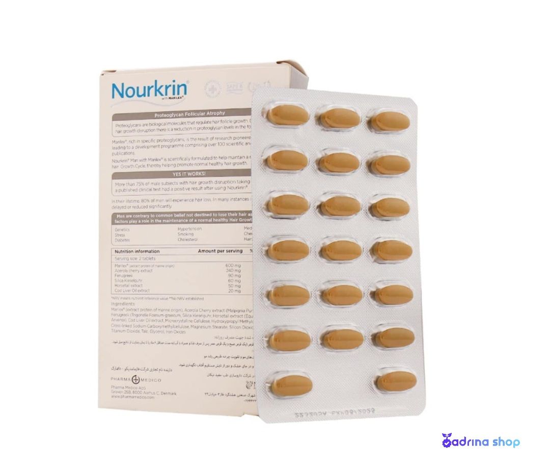 بدون شک یکی از قوی ترین محرکات رشد مو می باشد. نورکرین آقایان محصولی از شرکت دانمارکی فارمامدیکو است که مهمترین ویژگی Nourkrin آقایان را 100% طبیعی بودن آن می دانند. استفاده از ترکیبات منحصر به فردی مانند عصاره ماریلکس، عصاره آسرولا چری و عصاره گیاه دم اسب تایید کننده این مطلب است.