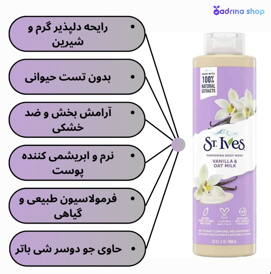 ویژگی های شامپوی بدن نرم کننده وانیل و شیر جو دوسر سینت ایوز